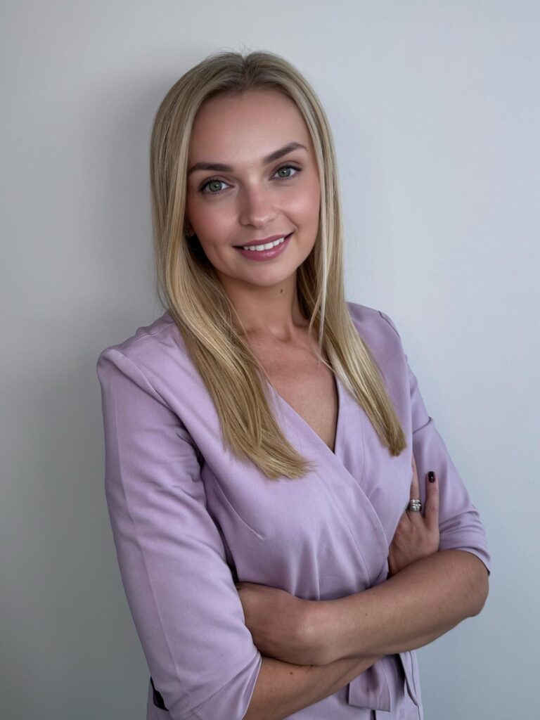 Absolwentka Śląskiego Uniwersytetu Medycznego. Ukończyła studia podyplomowe realizowane przez Athenea Dental Institute Uniwersytetu San Jorge w Barcelonie z dziedziny ortodoncji otrzymując tytuł „Master of Science in Orthodontics and Dentofacial Orthopedics” uprawniający do praktykowania leczenia ortodontycznego na terenie całej Unii Europejskiej. Członek Polskiego Towarzystwa Ortodontycznego. Certyfikowany lekarz Invisalign oraz Clear Aligner. Uczestniczka wielu kursów teoretycznych i praktycznych z zakresu ortodoncji i stomatologii odtwórczej a także okluzji w ortodoncji-tematu coraz bardziej docenianego w Polsce. Stawia na profilaktykę wad zgryzu i leczenie zarówno dzieci, młodzieży jak i dorosłych. W codziennej pracy podkreśla istotę przejrzystości planów leczenia przedstawianych pacjentom i wyczerpująco odpowiada na pytania. Swoich pacjentów zawsze wita uśmiechem. Wolne chwile poświęca rodzinie i znajomym. Aktywnie spędzony czas na zajęciach crossfit, rowerze, pływaniu czy jeździe na nartach pozwala na co dzień zachować świeżość umysłu.